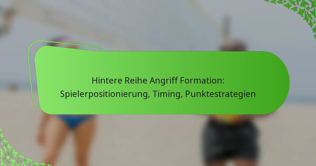 Die Hinterfeld-Angriffsformation ist ein taktischer Ansatz, der in Sportarten wie Volleyball und Basketball verwendet wird, bei dem die Spieler im Hinterfeld strategisch positioniert sind, um Scoring-Möglichkeiten zu schaffen. Effektive Spielerpositionierung und Timing sind entscheidend für die erfolgreiche Ausführung dieser Formation, die es den Teams ermöglicht, offensive Spielzüge mit defensiven Verantwortlichkeiten in Einklang zu bringen.